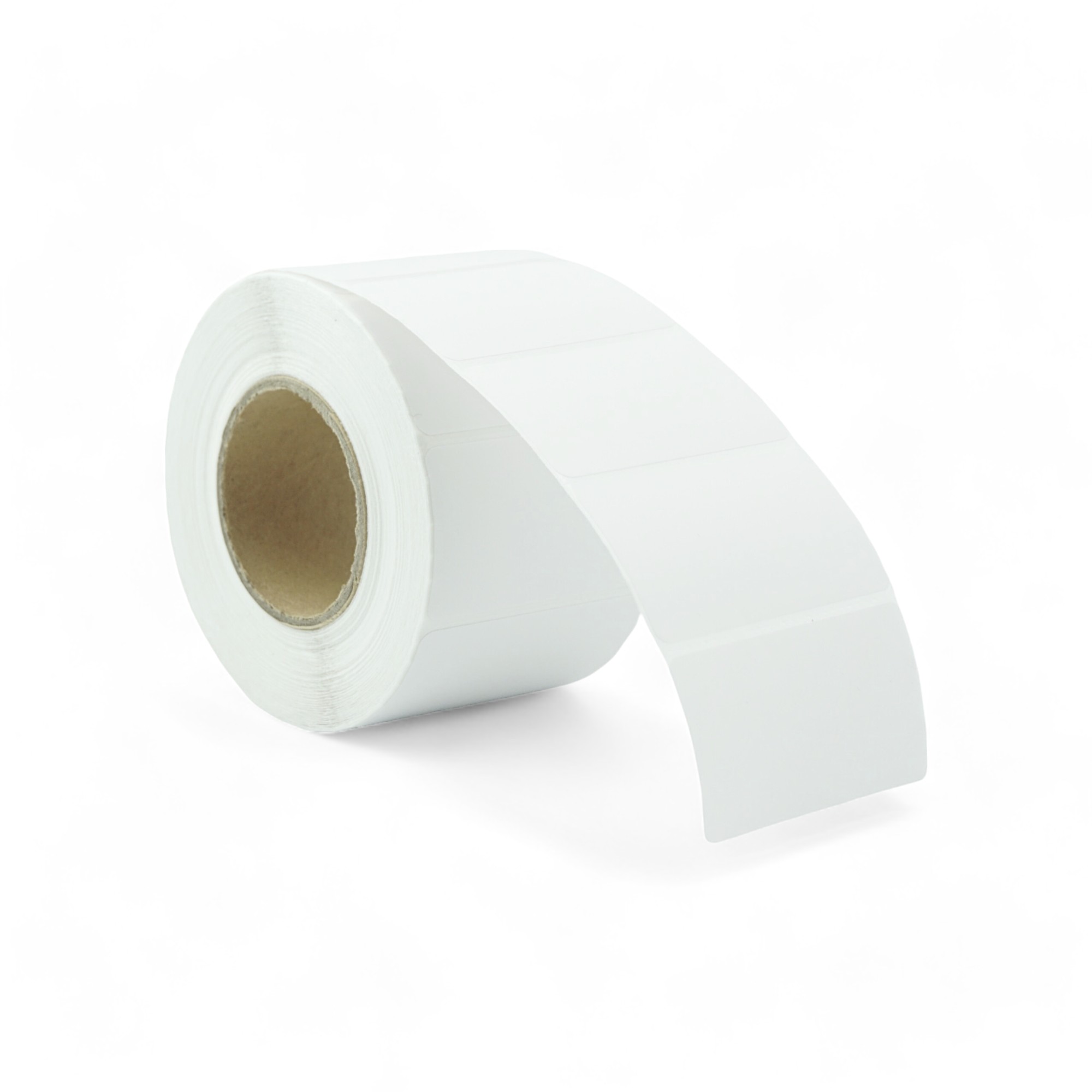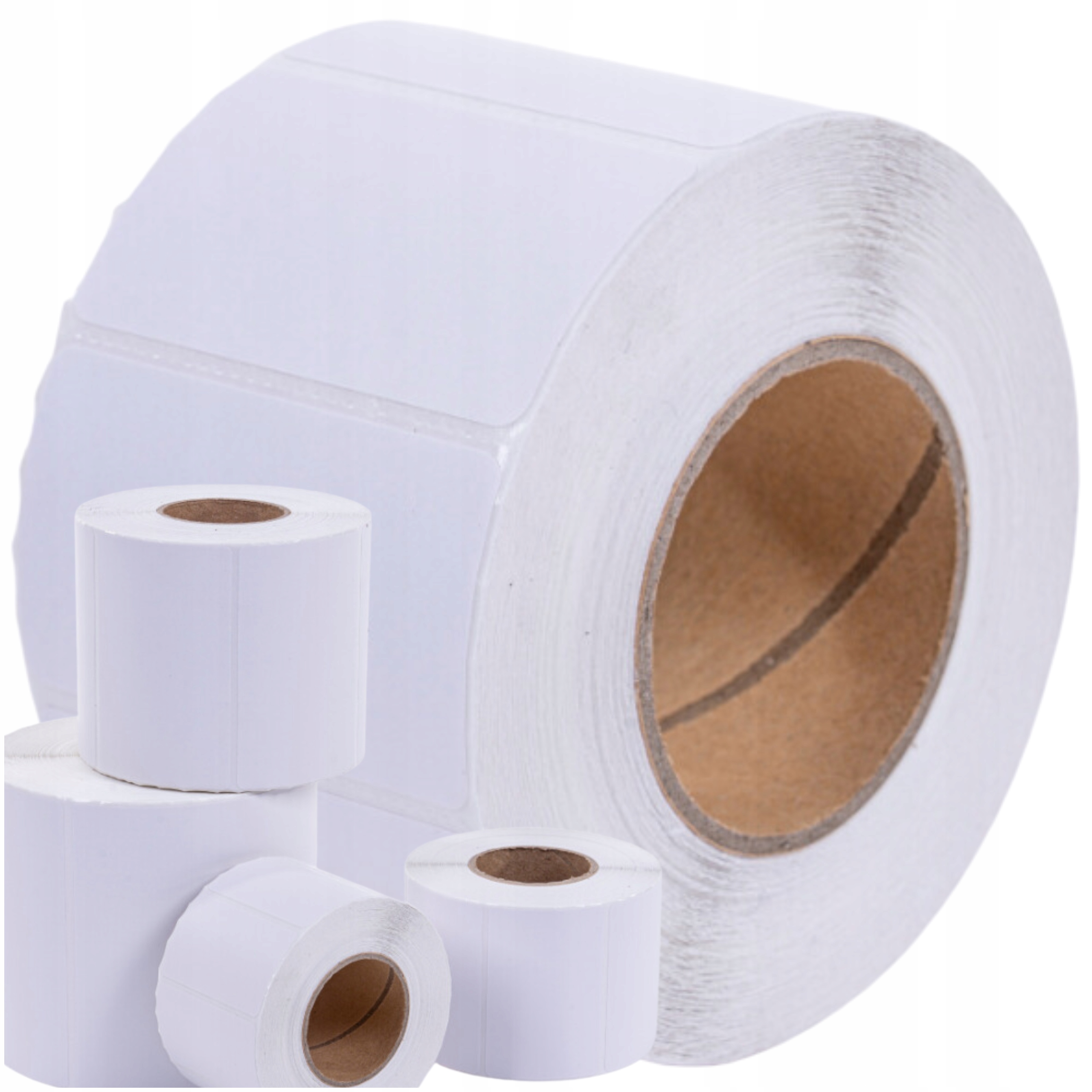 Białe etykiety samoprzylepne do druku termicznego, przeznaczone do użytku w magazynie, biurze i logistyce.
