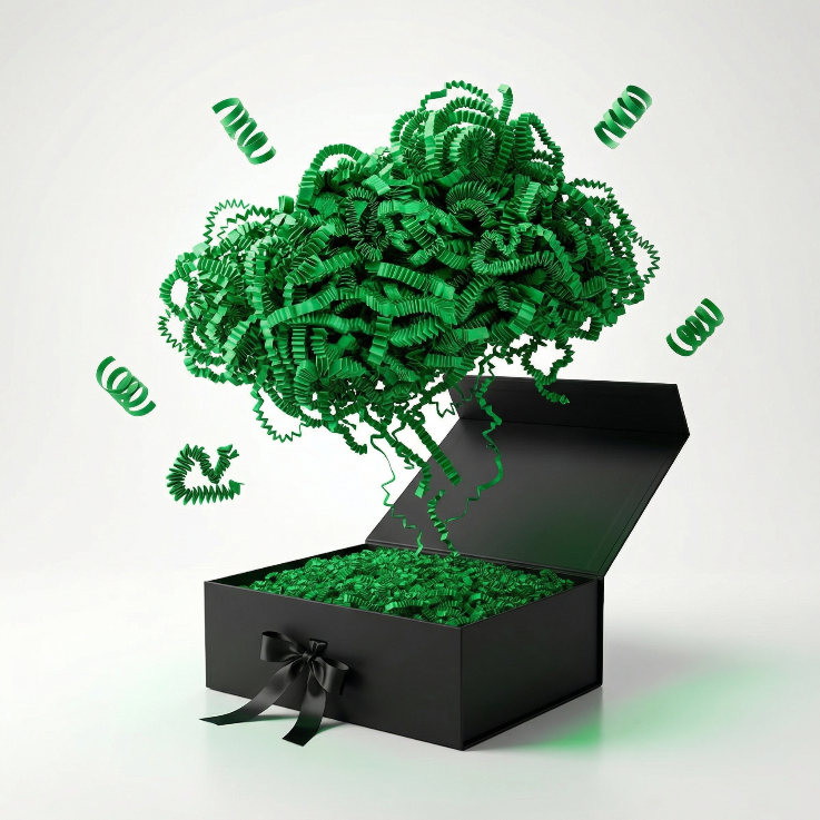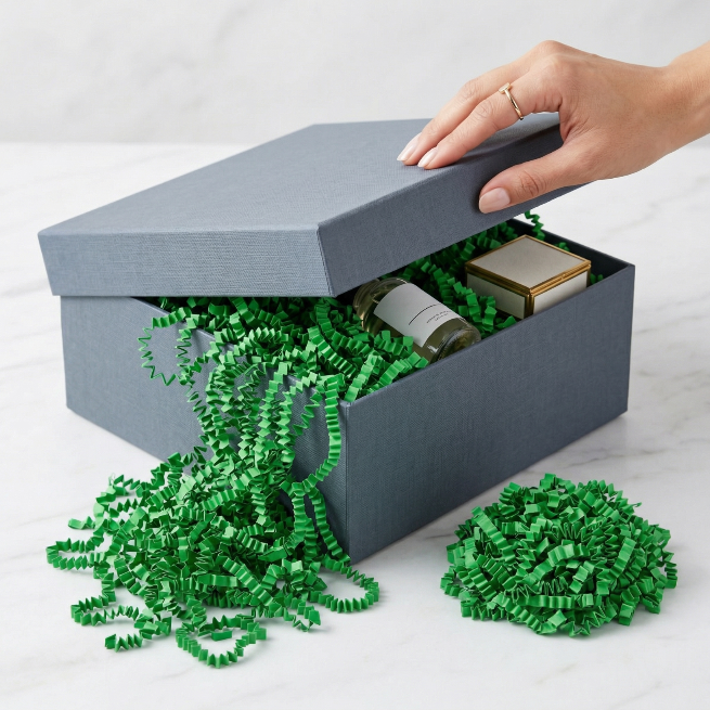 Dekoracyjny wypełniacz papierowy podkreśla charakter prezentów i zapewnia ich estetyczne wykończenie. Sprężysta struktura skutecznie chroni zawartość, a jednocześnie tworzy elegancką oprawę w opakowaniach prezentowych i przesyłkach.