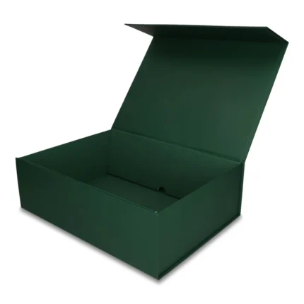 Zielone pudełko prezentowe składane z zamknięciem magnetycznym Eleganckie pudełko prezentowe z zamknięciem magnetycznym to stylowa oprawa dla wyjątkowych upomników i